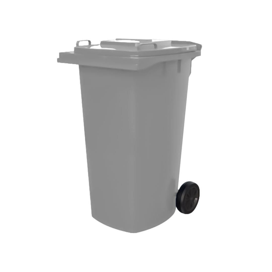 Fabricado en polietileno de alta densidad. Contenedor con tapa y ruedas de hule. Capacidad volumen: 240 Litros. Color: Gris. Ancho: 58.0 cm. Largo: 73.0 cm. Alto: 108.0 cm.